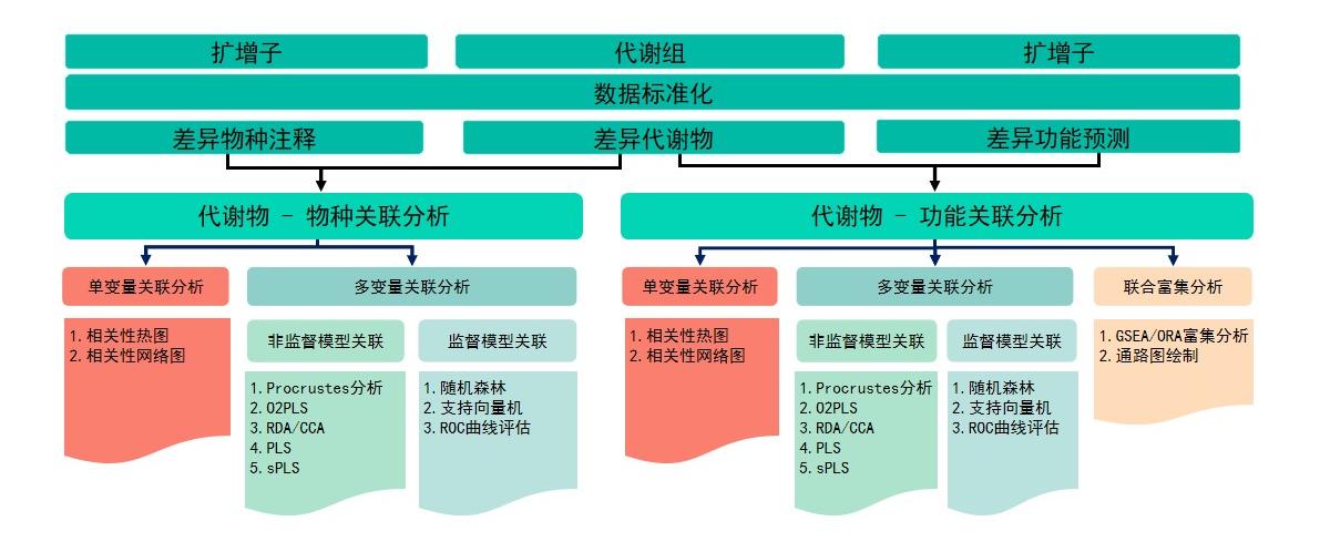 2.将关联分析分为两类:代谢物-物种关联分析,代谢物-功能关联分析。